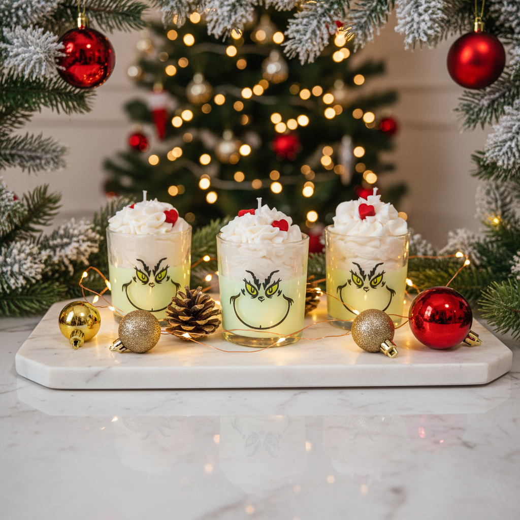 Bring a touch of mischievous holiday magic into your home with our Grinch Candle, infused with the cozy aroma of cinnamon apple pie. Warm, sweet, and gently spicy, this festive fragrance fills your space with the comforting scent of fresh-baked goodness—perfect for anyone whose heart grows three sizes with a little seasonal cheer.